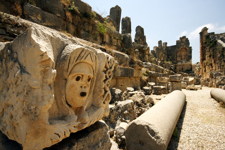 As a young man, Nicholas answered God's invitation to enter the priesthood. Later on, word quickly spread that the Bishop of the nearby Diocese of Myra had died. Remarkably, particularly when one considers he was only 30 years of age at the time, a regional synod of bishops called upon him to fill the now-vacant See as the new bishop of Myra. (Photos: Interior, Church of St. Nicholas, Myra, above; Ruins of Myra, below).