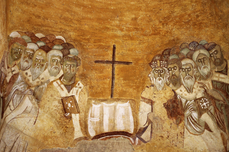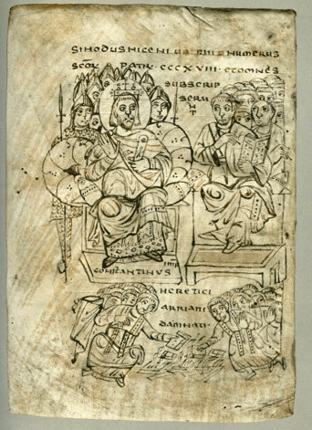 Many traditions attesting to St. Nicholas' extraordinary compassion holiness have come down to us throughout the ages. Additionally, numerous accounts tell of his prayers to the Lord delivering storm-tossed sailors and their passengers from almost certain death; thereby harkening to events recorded regarding a dangerous voyage experienced by St. Paul of Tarsus on his way to Rome (Acts 27:1-44). Bishop Nicholas: Bold Defender of the Divinity of Christ and the Holy TrinityAs Bishop, Nicholas was immediately imprisoned for the Faith during what would prove to be the bloodiest persecution of the early Church. This terrible incident began in February of 303 A.D., during the reign of the pagan Roman Emperor, Diocletian. History records that several edicts removed the legal rights of all Christians throughout the Roman Empire; including Asia Minor. These documents further demanded the worship of the pagan gods; something St. Nicholas flatly rejected. The persecution varied in intensity across the empire. Persecutory laws were nullified under Constantine the Great with the promulgation of the now-famous Edict of Mila (313 A.D.). Historians mark this decree as the end of that persecution. Twelve years after his release from prison, St. Nicholas was among the 318 bishops who participated in First Ecumenical Council of Nicaea in 325 A.D. The council was called into session by Emperor Constantine to resolve doctrinal confusion that was actively spreading like an infection throughout the Roman Empire; the Arian Controversy.