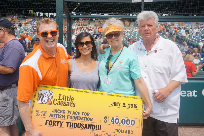 Representatives from Little Caesar Enterprises, Inc. present Lisa and Jim Price with a generous donation to benefit JACK’S PLACE for Autism Foundation, during the , July 5, 2015.